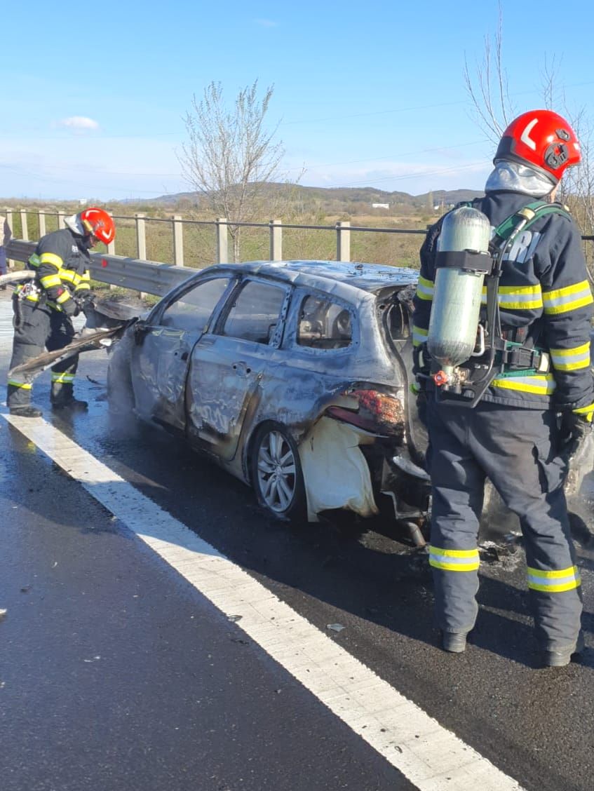 Cu puțin timp în urmă, un incendiu a izbucnit la un autoturism pe Autostrada A1, la km 107, pe sensul de deplasare București – Pitești.