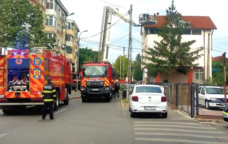 La fața locului acționează pompierii cu trei autospeciale pentru stingerea incendiilor, o autoplatformă de intervenție și salvare de la înălțime și un echipaj SMURD.