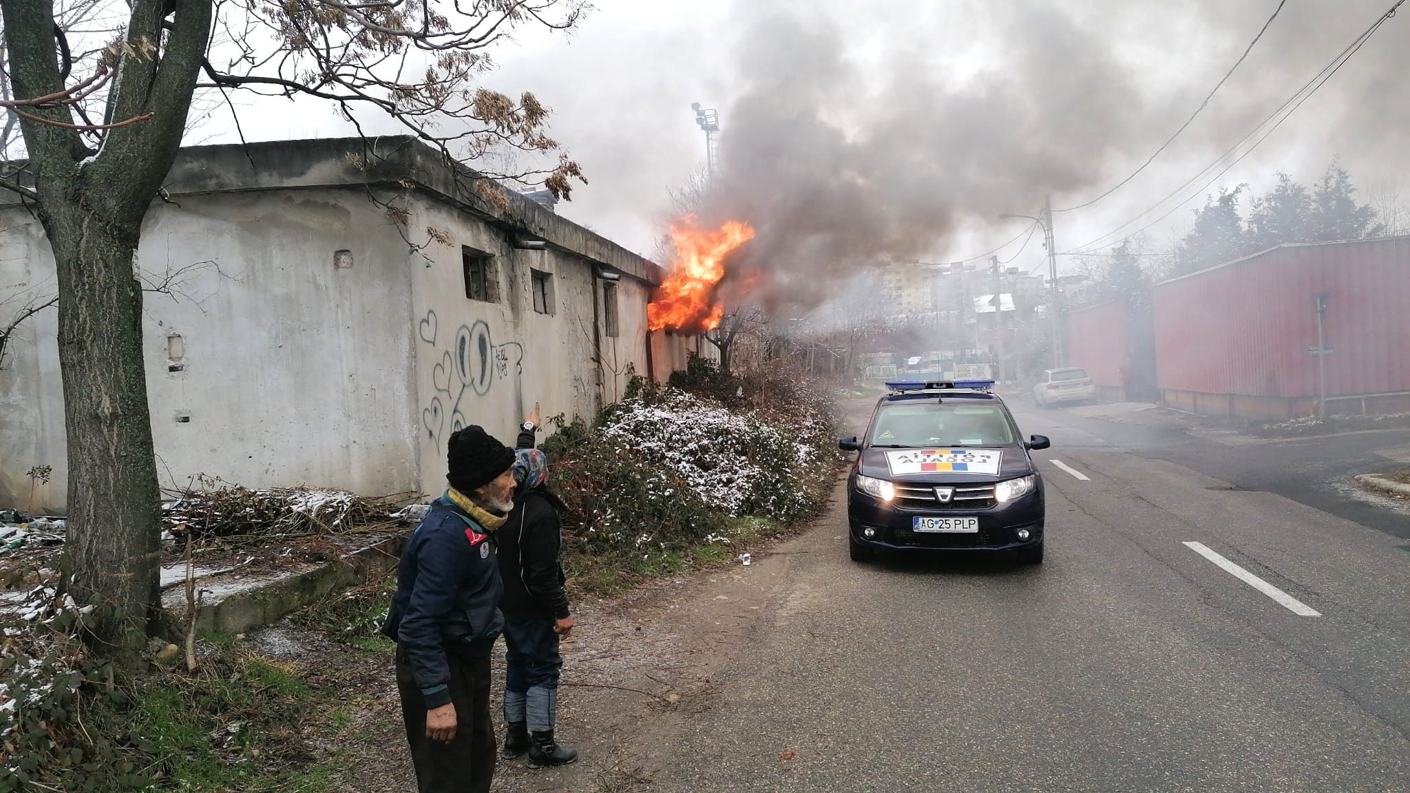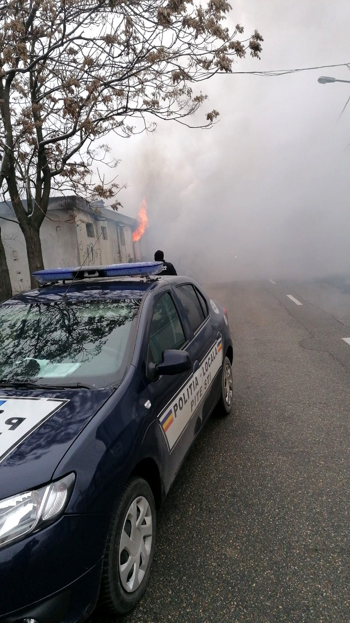 Un incendiu puternic a izbucnit cu puțin timp în urmă într-o clădire dezafectată din zona Gării Sud din Pitești, folosită ca adăpost de oameni ai străzii. Incendiul a fost văzut de un echipaj de la Poliția Locală.