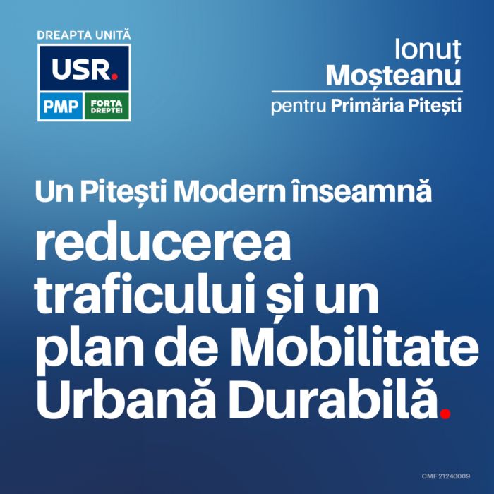 „Orașul nostru devine tot mai aglomerat. Proiectele de infrastructură de până acum au fost gândite pompieristic, fără un plan integrat. Lipsa trotuarelor, a pistelor de biciclete și a unei rețele de transport public eficient sunt probleme reale ignorate ani de zile de PSD-iștii care au condus Primăria Pitești”, afirmă Ionuț Moșteanu.