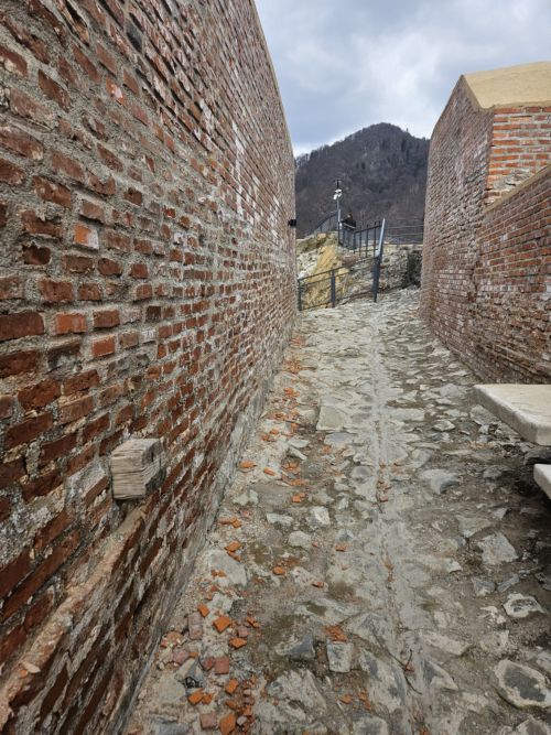 -cărămizile noi din care au fost refăcute zidurile se dezintegrează, iar bucăți din acestea sunt pe jos, în toată cetatea;