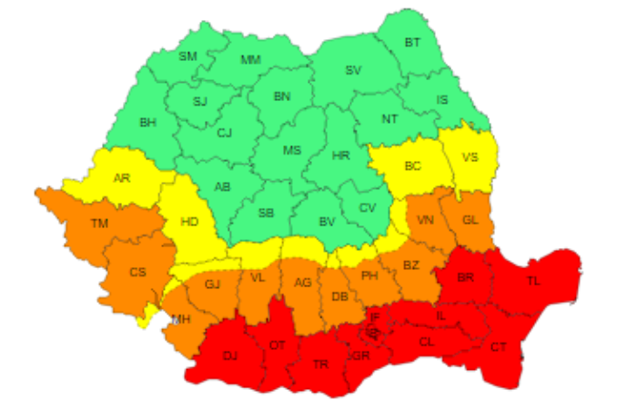 În județele Dolj, Olt, Teleorman, Giurgiu, Ilfov, Călărași, Ialomița, Brăila, Tulcea și Constanța și în municipiul București valul de căldură va continua să fie intens.