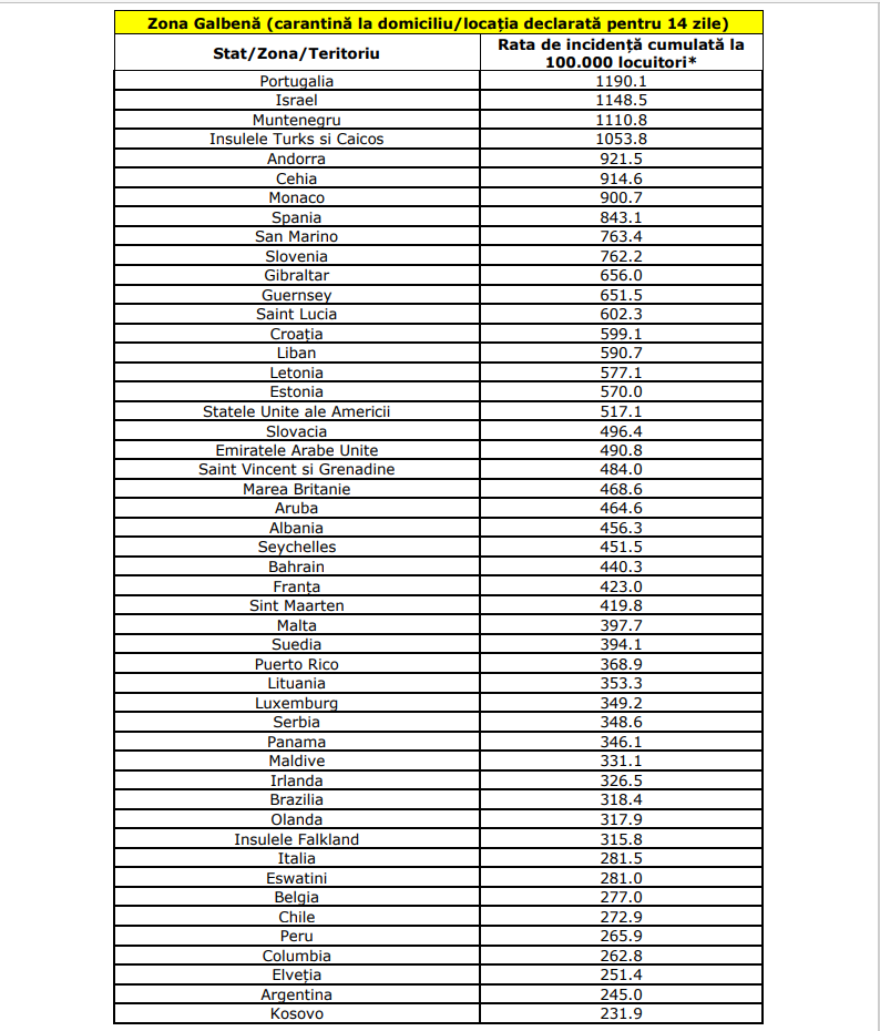 Comitetul Național pentru Situații de Urgență (CNSU) a actualizat lista cu țările/zonele/teritoriile cu risc epidemiologic ridicat, pe fondul pandemiei de COVID-19.