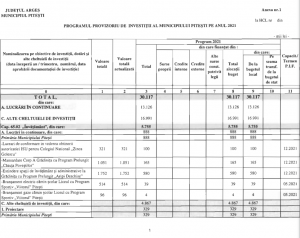 Primăria a dat publicității lista provizorie a investițiilor publice care ar urma să fie realizate în municipiul Pitești pe parcursul anului 2021.