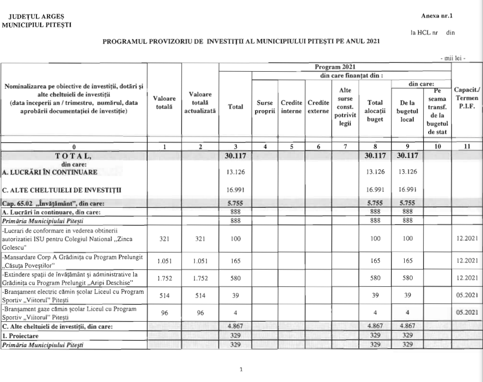 Vă prezentăm programul provizoriu de investiții pentru anul 2021 (click pe imagini pentru vizualizare):