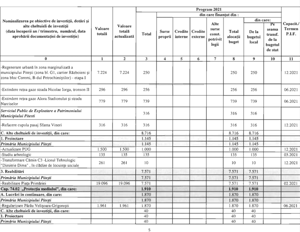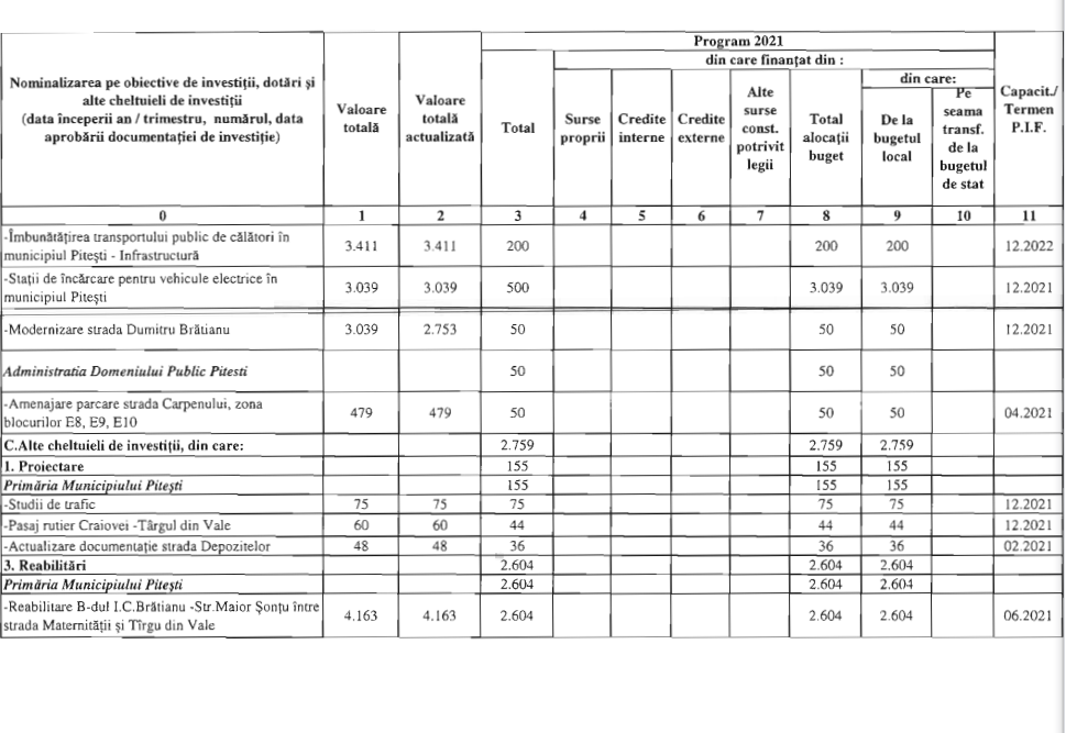 Primăria a dat publicității lista provizorie a investițiilor publice care ar urma să fie realizate în municipiul Pitești pe parcursul anului 2021.