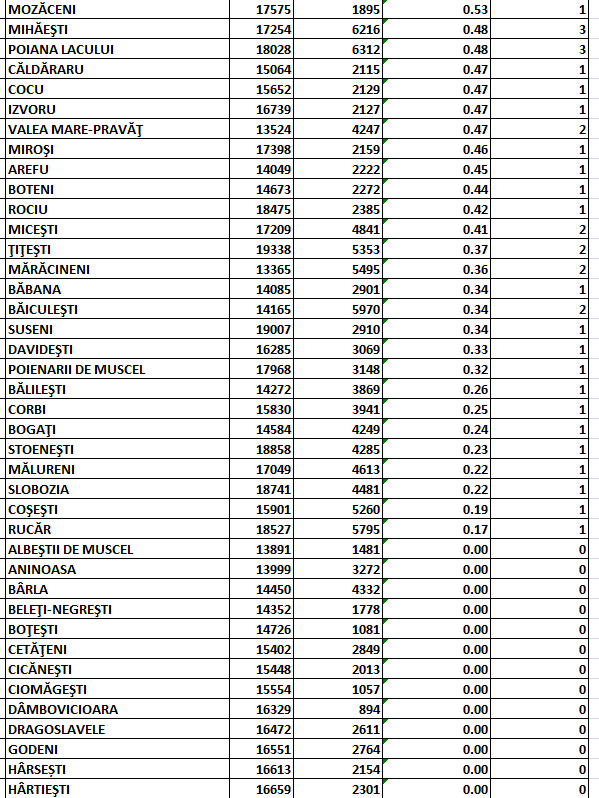 Direcția de Sănătate Publică a actualizat bilanțul COVID-19 pentru fiecare localitate din județul Argeș.