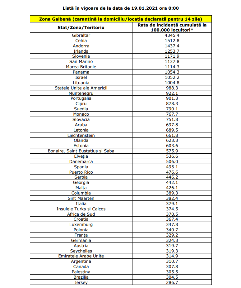 Lista actualizată intră în vigoare la miezul nopții (19 ianuarie 2021, ora 00:00):