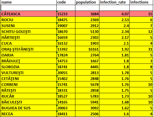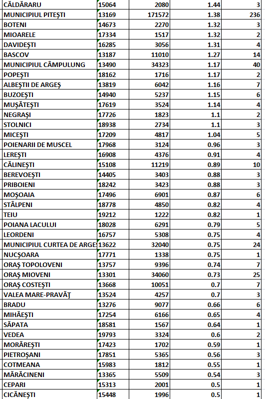 Direcția de Sănătate Publică a actualizat cu puțin timp în urmă datele referitoare la situația epidemiologică din fiecare localitate din județul Argeș.