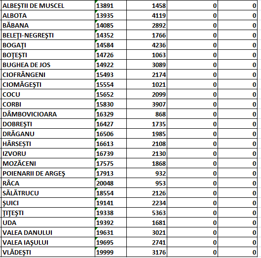 Potrivit sursei citate, în scenariul roșu rămâne comuna Căteasca, iar în scenariul galben sunt orașul Ștefănești și comunele Rociu, Suseni, Schitu Golești, Hârtiești, Cuca, Oarja, Brăduleț, Slobozia, Vulturești, Cetățeni, Corbeni, Rătești, Rucăr, Băiculești, Bughea de Sus și Recea (click pe imagini pentru vizualizare):