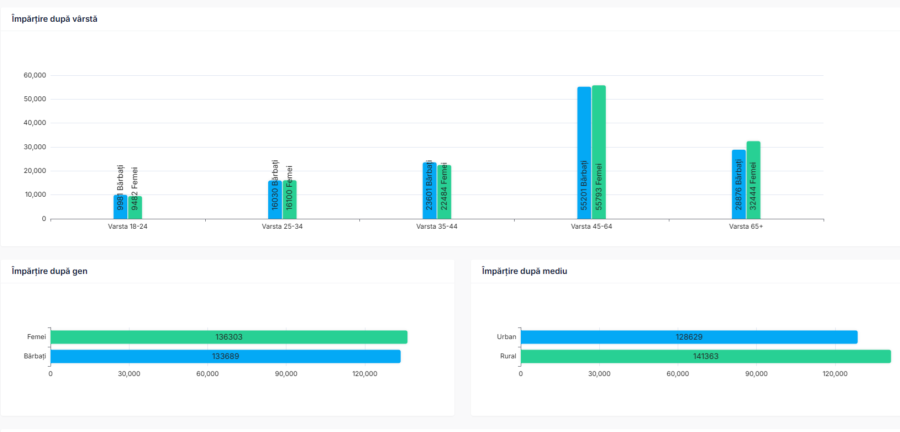 Prezența la vot la ora 20:00 în județul Argeș, pe vârstă, gen și mediu (urban/rural):