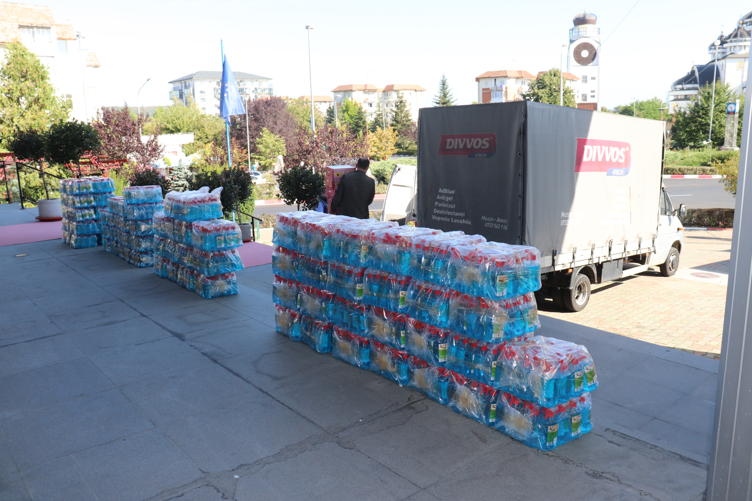 Tot astăzi, către școlile din Mioveni au fost transportate 20.000 de măști de protecție în trei straturi și 1.520 de flacoane de dezinfectant pentru suprafețe și pentru mâini. Toate acestea au fost donate de SC Divvos Grup SRL și Francesca SA, la propunerea administrației locale a orașului.