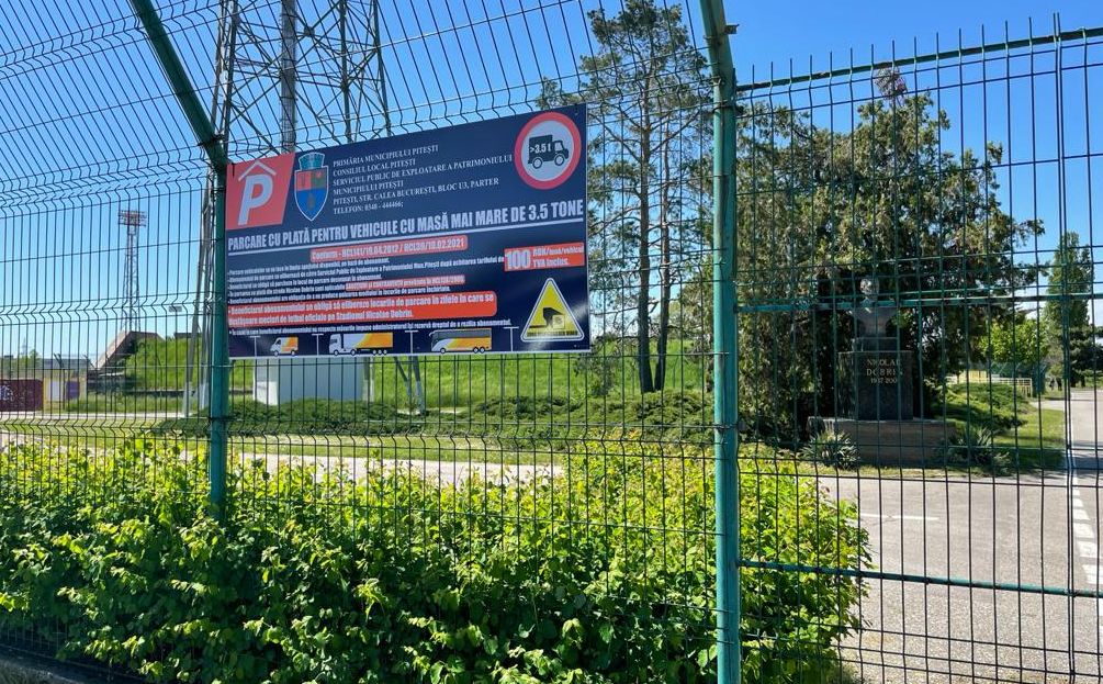 Parcarea din fața stadionului „Nicolae Dobrin” din Pitești a fost special amenajată pentru a le oferi proprietarilor de mașini cu masa mai mare de 3,5 tone posibilitatea închirierii unui loc. Sunt disponibile 41 de locuri de parcare pentru acest tip de autovehicule.