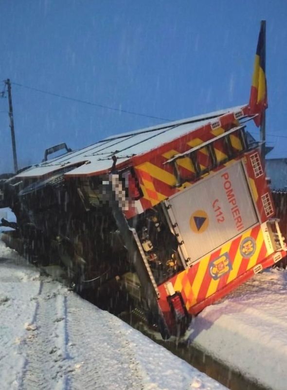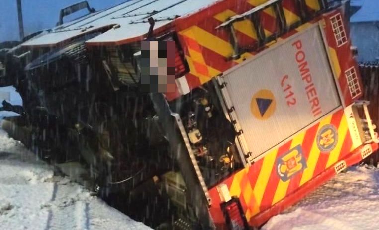 Din cauza condițiilor de drum (carosabil alunecos ca urmare a ninsorilor din ultimele ore), șoferul a pierdut controlul asupra volanului, autospeciala a derapat și s-a răsturnat într-un șanț pe o parte.