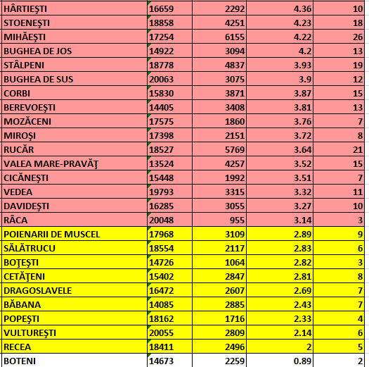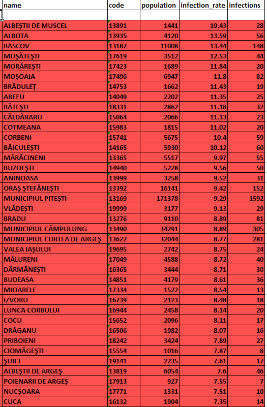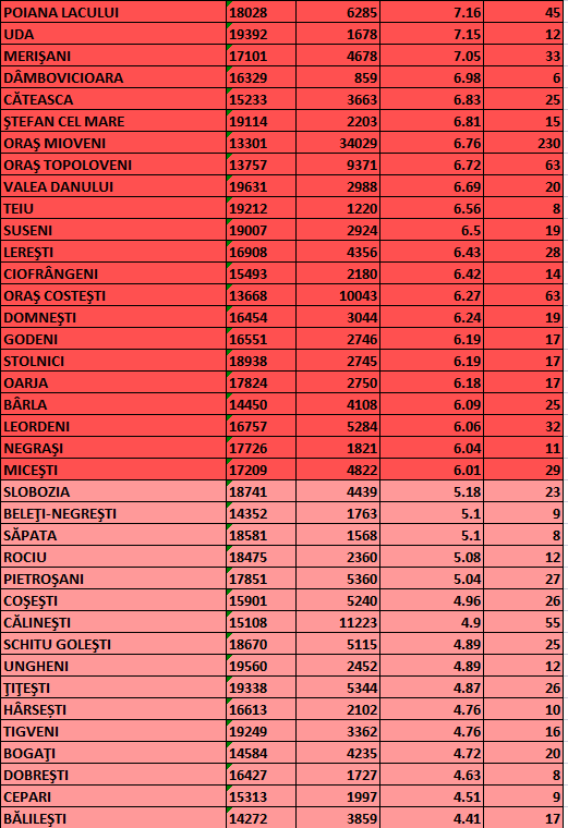 Datele epidemiologice la zi (7 noiembrie) pentru toate localitățile din județul Argeș: