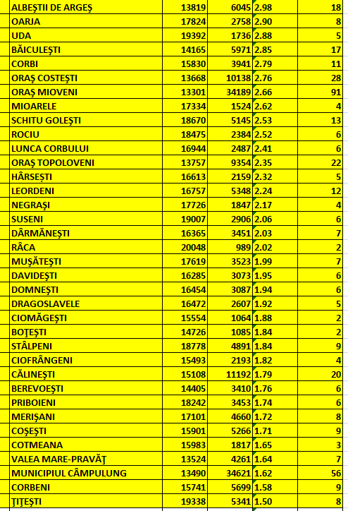 Lista celor 20 de localități din Argeș aflate în scenariul roșu: