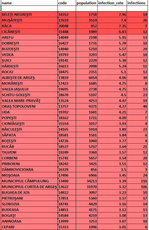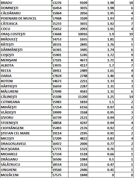 Situația epidemiologică la zi (22 noiembrie) în fiecare localitate din județul Argeș: