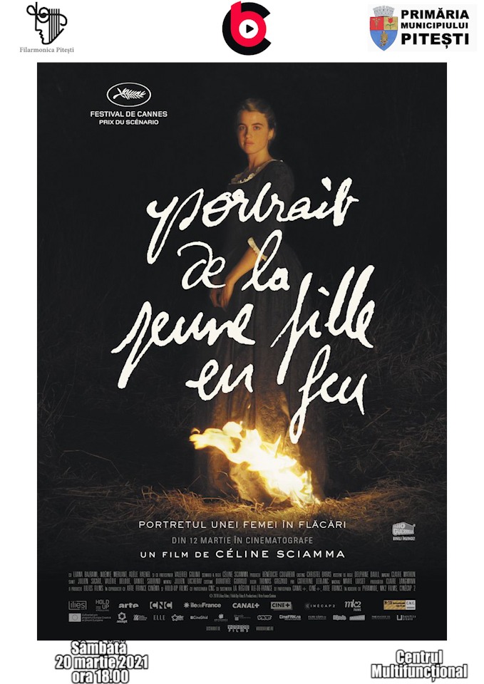 Sâmbătă, 20 martie 2021, de la ora 18:00, la cinematograful de artă „București” din centrul Piteștiului va fi proiectat filmul Portretul unei femei în flăcări, cu Noemie Merlant, Adele Haenel și Luana Bajrami în rolurile principale, în regia lui Celine Sciamma.