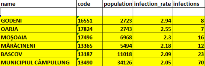 Crește numărul localităților din județul Argeș intrate în scenariul galben din punct de vedere epidemiologic, cu rată de infectare peste 2 la mia de locuitori. Potrivit Direcției de Sănătate Publică, la această oră sunt în acest scenariu comunele Godeni, Oarja, Moșoaia, Mărăcineni și Bascov și municipiul Câmpulung: