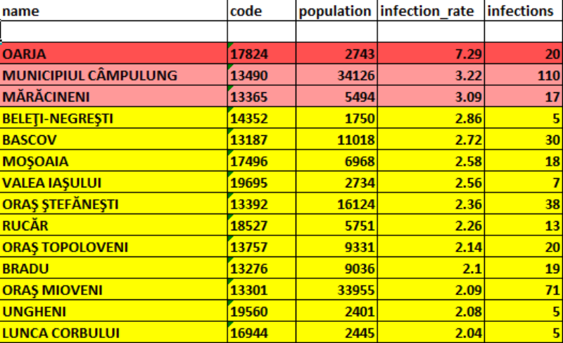 Direcția de Sănătate Publică informează că în ultimele 24 de ore încă o localitate din județul Argeș a intrat în scenariul roșu din punct de vedere epidemiologic: municipiul Câmpulung. De la începutul valului cinci al pandemiei, este a treia localitate din Argeș, după comunele Oarja și Mărăcineni, care a trecut în scenariul roșu.