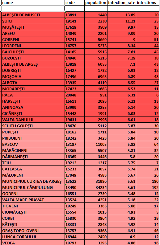 Situația epidemiologică astăzi (16 noiembrie) în fiecare localitate din județul Argeș, potrivit datelor transmise cu puțin timp în urmă de Direcția de Sănătate Publică: