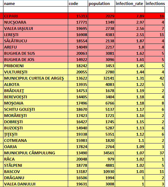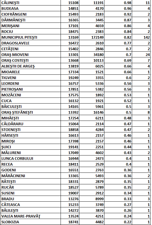 Situația epidemiologică din fiecare localitate din județul Argeș, actualizată cu puțin timp în urmă de Direcția de Sănătate Publică (pentru vizualizare, click pe imagini):