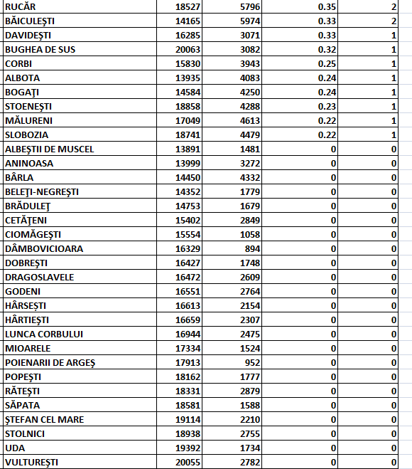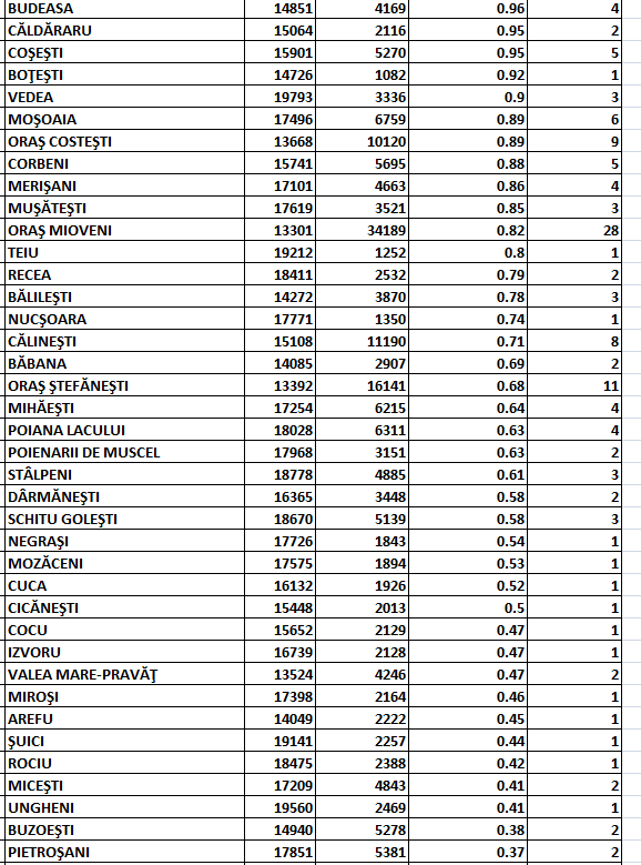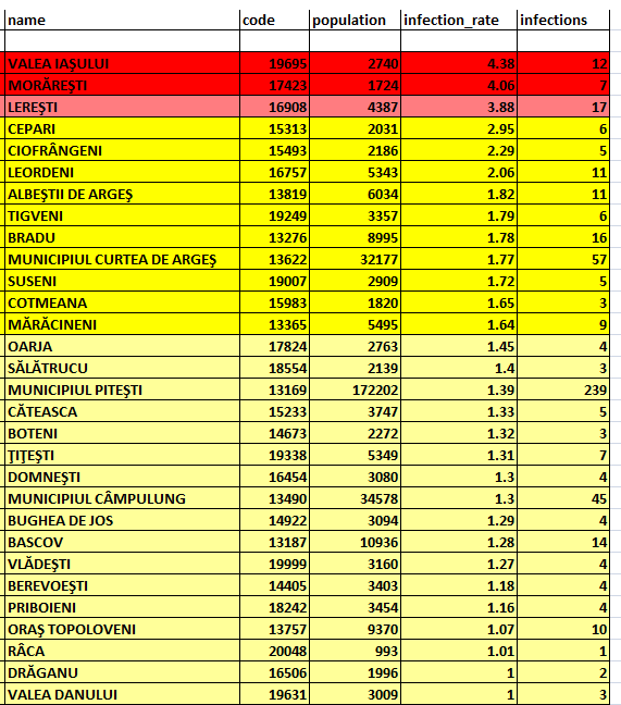 Direcția de Sănătate Publică anunță că în județul Argeș au rămas în scenariul roșu – din punct de vedere epidemiologic – doar 3 comune: Valea Iașului, Morărești și Lerești.