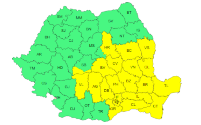 Astăzi, între orele 12:30 și 13:30, aceste localități se vor afla sub cod portocaliu de tip nowcasting. Potrivit ANM, se vor semnala averse care vor cumula 25…40 l/mp.