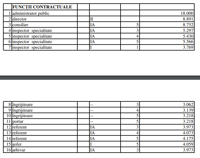 Salariul de bază al unui șef de serviciu este de 9.410 lei, al unui șef de birou, de 9.140 de lei, iar al unui director, de 8.891 de lei.