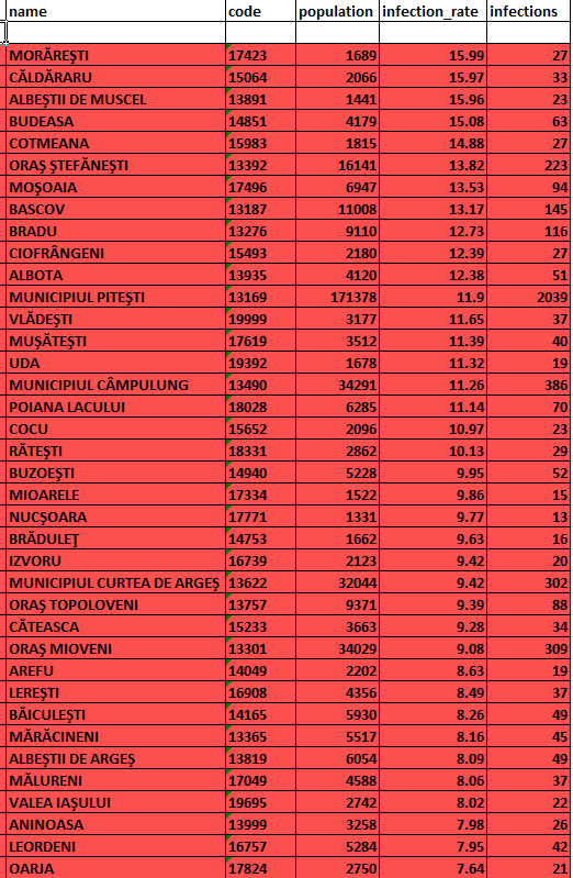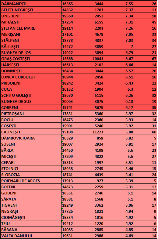 Situația epidemiologică azi, 1 noiembrie, în toate localitățile din județul Argeș, conform Direcției de Sănătate Publică: