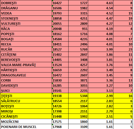 În ultimele 24 de ore, rata de infectare în Pitești a coborât sub 12 cazuri la mia de locuitori. Amintim că vineri, când Piteștiul a intrat pe un trend descendent, rata de incidență era de 13,43.