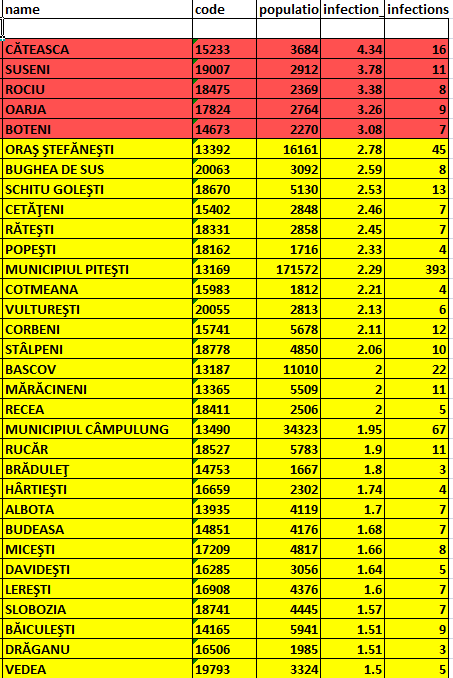 În ultimele 24 de ore, alte două localități din județul Argeș au intrat în scenariul roșu din punct de vedere epidemiologic: comunele Oarja (din apropiere de Pitești) și Boteni. La această oră, 5 localități argeșene – toate comune – se află în scenariul roșu: Oarja, Boteni, Căteasca, Suseni și Rociu.