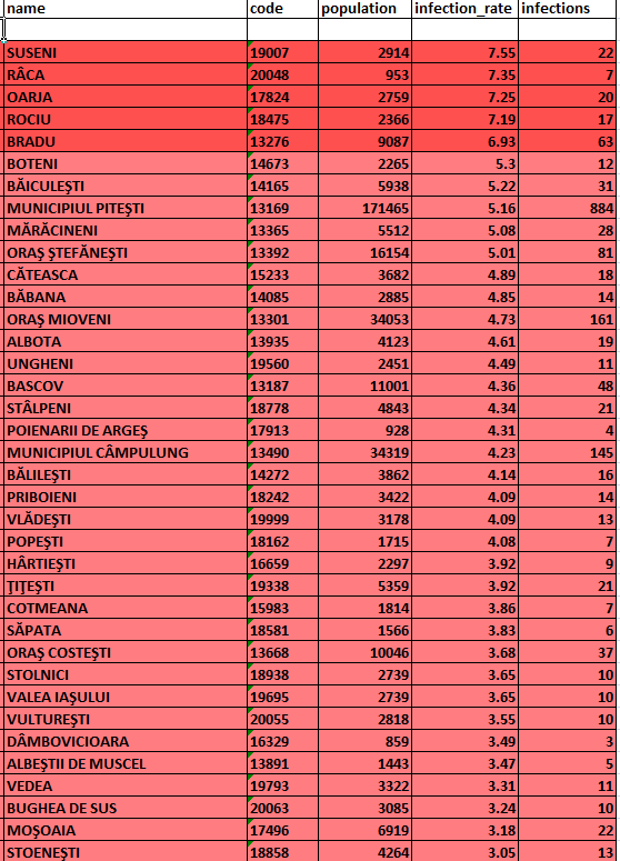 Numărul localităților din județul Argeș care se află în scenariul roșu din punct de vedere epidemiologic a ajuns la 37. În Pitești rata de incidență a cazurilor de infectare cu noul coronavirus a depășit pragul de 5 la mia de locuitori.