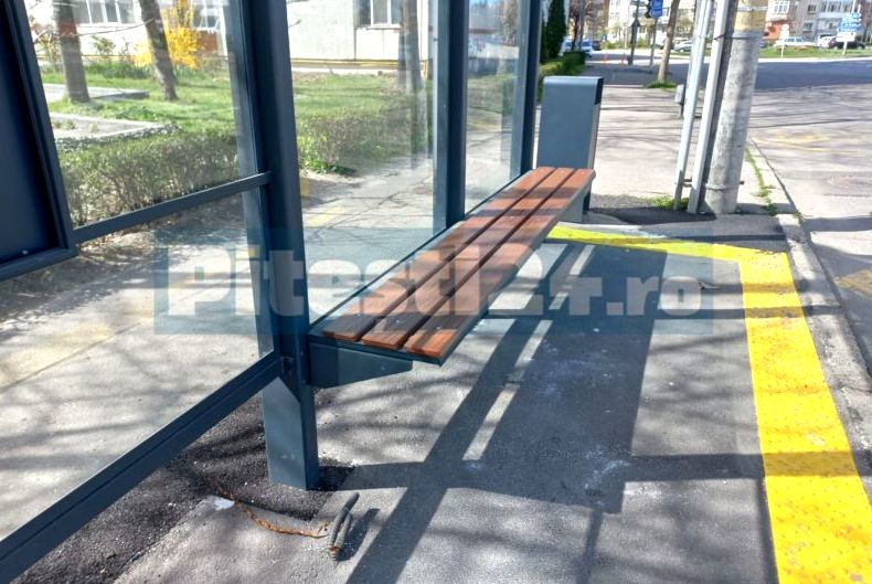 Continuă „odiseea” noilor stații de autobuz Publitrans din Pitești. După ce călătorii au reclamat, pe bună dreptate și în repetate rânduri, că băncile din stații (realizate din profile metalice galvanizate) sunt neutilizabile când plouă sau ninge sau când afară este foarte cald, în sfârșit executantul le-a placat cu lemn.