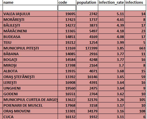 Pentru comparație, puteți (re)citi AICI situația din urmă cu 24 de ore din județul Argeș.