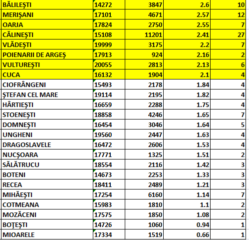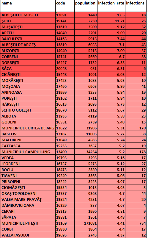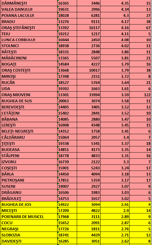 Direcția de Sănătate Publică a actualizat cu puțin timp în urmă datele epidemiologice pentru fiecare localitate din județul Argeș: