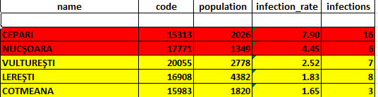 Direcția de Sănătate Publică a actualizat datele epidemiologice pentru fiecare localitate din județul Argeș. În scenariul roșu mai sunt comunele Cepari și Nucșoara, iar în scenariul galben comunele Vulturești, Lerești și Cotmeana (click pe imagine pentru vizualizare):