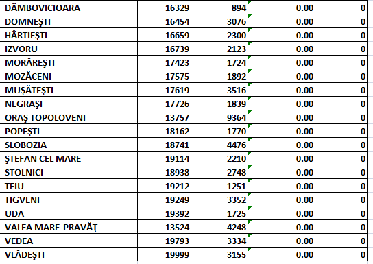 Direcția de Sănătate Publică a actualizat datele epidemiologice pentru fiecare localitate din județul Argeș. În scenariul roșu mai sunt comunele Cepari și Nucșoara, iar în scenariul galben comunele Vulturești, Lerești și Cotmeana (click pe imagine pentru vizualizare):