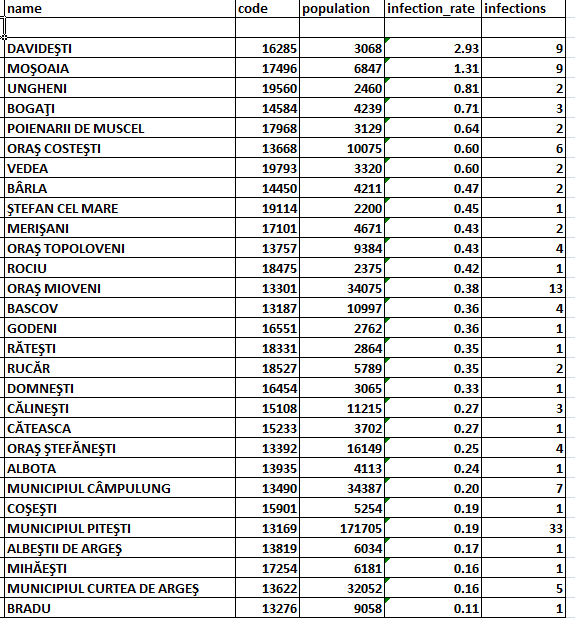Cazuri active de COVID-19 sunt în 29 de localități din județul Argeș (click pe imagine pentru vizualizare):