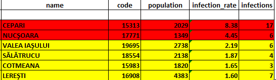 -scenariul galben: incidența cazurilor de infectare cumulată în ultimele 14 zile este între 1,5 și 3/1.000 de locuitori;