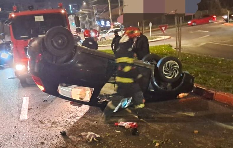 Un autoturism s-a răsturnat pe plafon în apropierea sensului giratoriu din zona de urcare către cartierul Trivale.