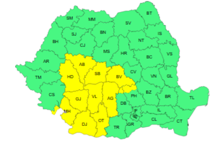 În Oltenia, în sudul Transilvaniei, precum și în nord-vestul Munteniei și în Carpații Meridionali vor fi perioade cu instabilitate atmosferică.