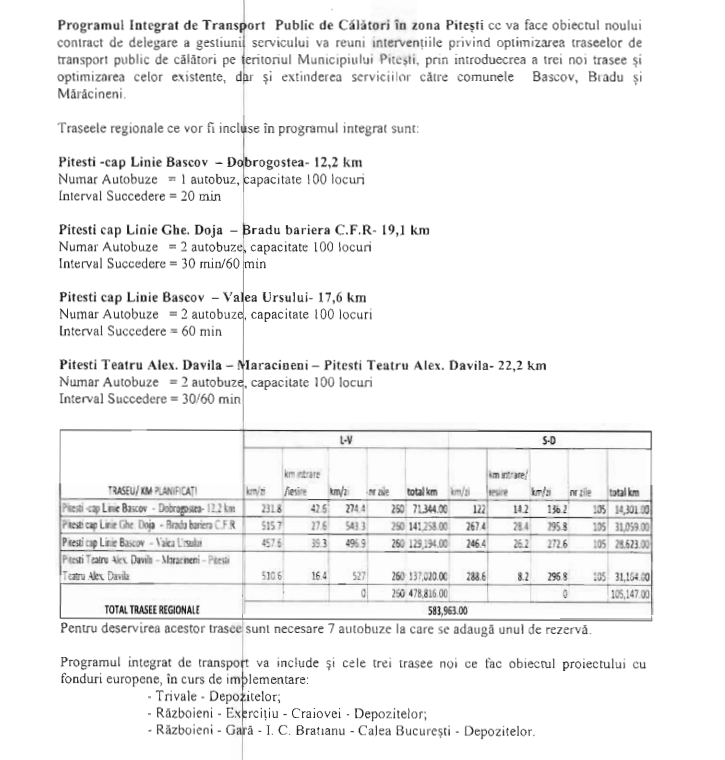 Consiliul Local Pitești a aprobat viitoarele trasee regionale de transport cu autobuze Publitrans către Bradu, Bascov, Mărăcineni și retur. Vor fi 4 trasee: