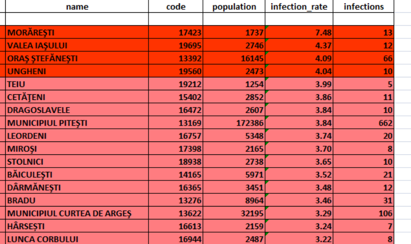 17 localități din județul Argeș se află la această oră în scenariul roșu din punct de vedere epidemiologic:
