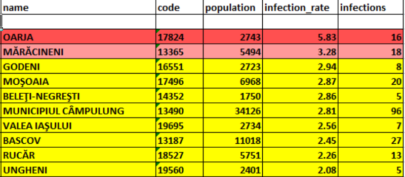 Alte 8 localități se află în scenariul galben: comunele Godeni, Moșoaia, Beleți-Negrești, Valea Iașului, Bascov, Rucăr și Ungheni și municipiul Câmpulung.
