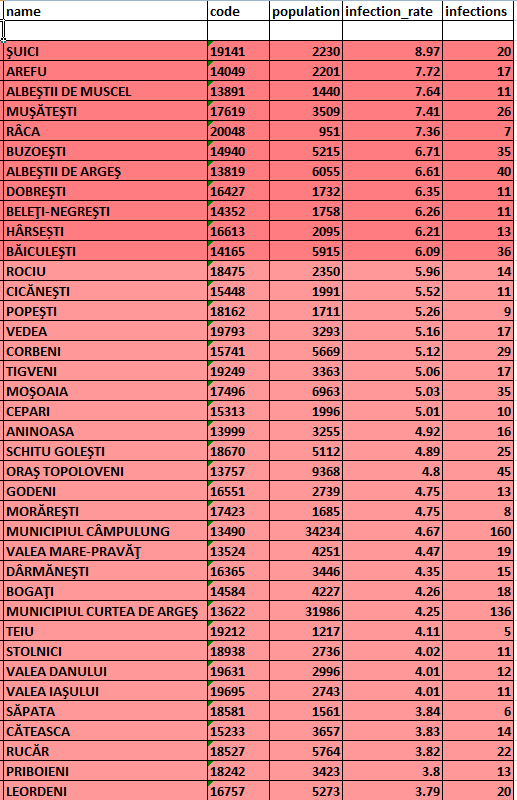 Datele epidemiologice la zi (19 noiembrie) în fiecare localitate din județul Argeș, potrivit Direcției de Sănătate Publică: