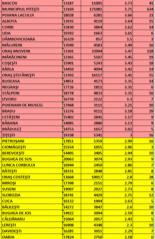 Piteștiul a coborât sub un nou prag de infectare cu noul coronavirus. În ultimele 24 de ore, rata de incidență în Pitești a scăzut de la 4,21 la 3,71 de cazuri la mia de locuitori.