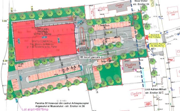 Magazinul ca atare va avea 1.473 de mp, cu regim de înălțime parter, cu minimum 80 de locuri de parcare și spații verzi pe cel puțin 20% din suprafața totală a terenului de 6.976 de mp.