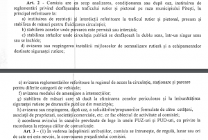 Plenul Consiliului Local a adus astăzi schimbări importante în alcătuirea comisiei de sistematizare a circulației rutiere și pietonale în municipiul Pitești.