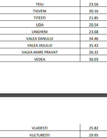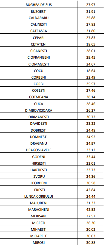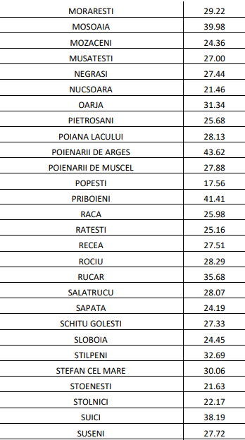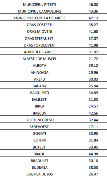 La polul opus, fruntaș este municipiul Pitești (46,08%). Chiar și așa, pe parcursul unei luni (începutul lui ianuarie 2022 și până în prezent), în Pitești procentul persoanelor care s-au vaccinat este de doar 0,44%. Procente infime de vaccinare sunt în ultima lună și în celelalte localități argeșene.